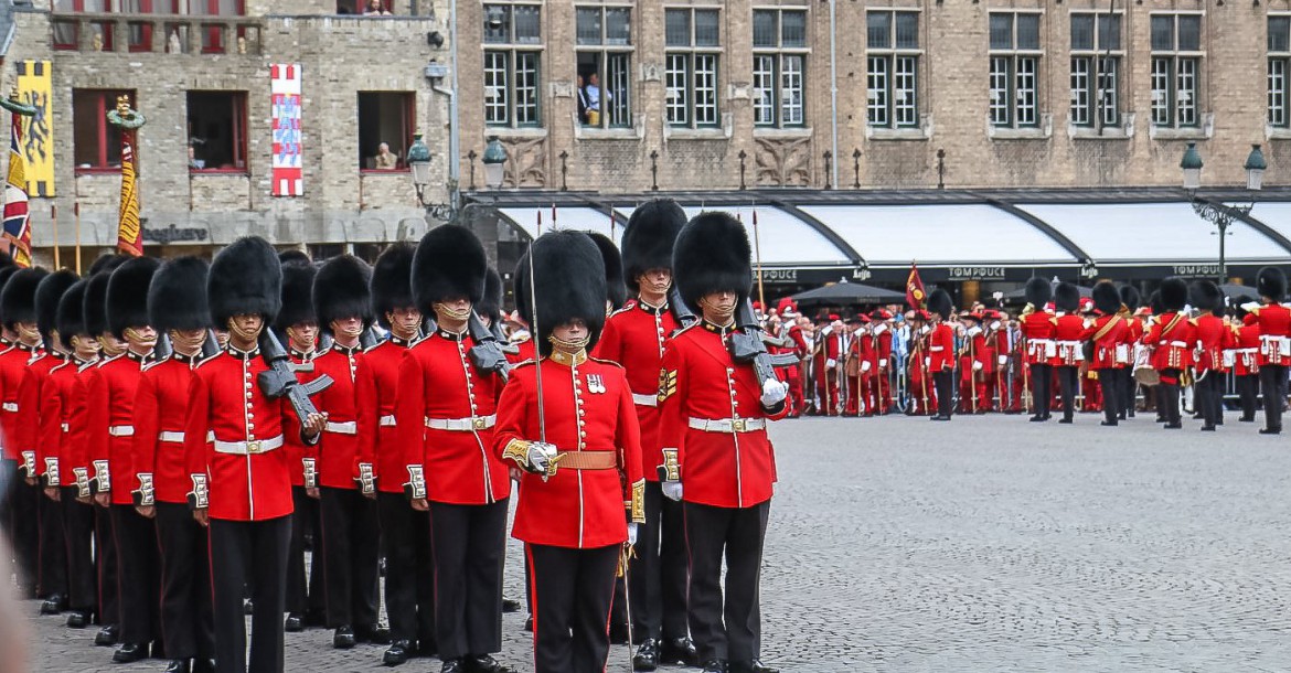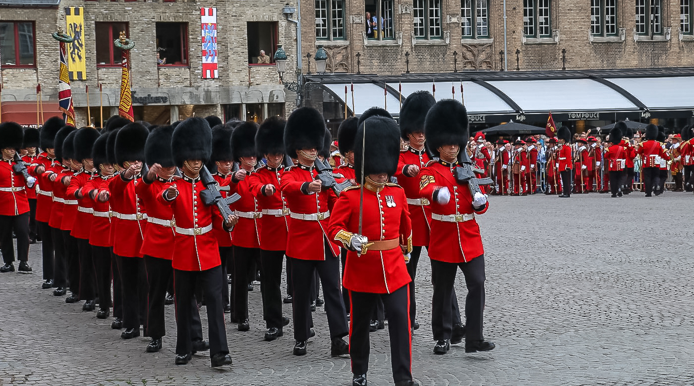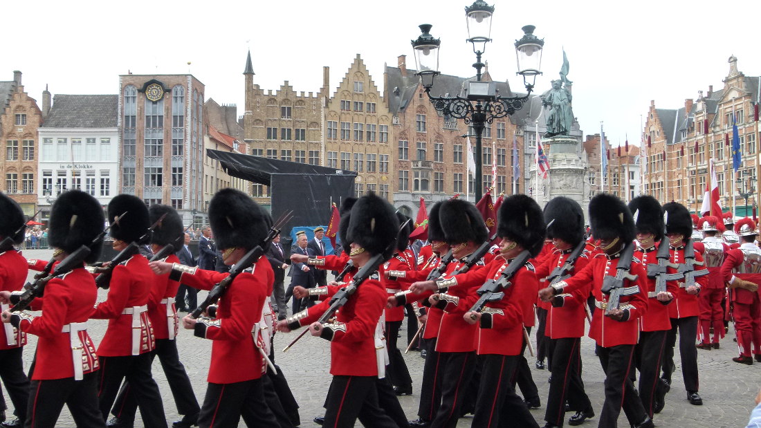 The Grenadier Guards, an infantry regiment of the British Army, gathered in the city centre of Bruges on Friday 2nd of september, followed by a city parade on Saturday the 3th at 10.30am with an inspection of the troops on the Market square. The Grenadier Guards were founded by King Charles II in 1656 during his stay in the city centre of Bruges. Also the famous Life Guards in 1659. They both have an important link to the city centre of Bruges.