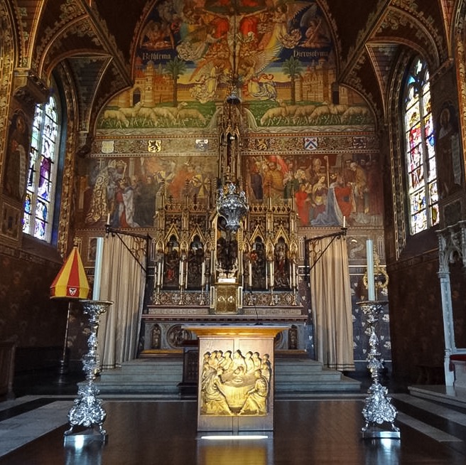 This chapel is located in a corner of the Burg square and judging by the richely decorated facade you would not immediately expect a chapel behind it. This flamboyant facade is actually a 16th century staircase that connects two underlying chapels: the Romanesque Saint-Basiliuschapel and the (neo)gothic Holy Bloodchapel.