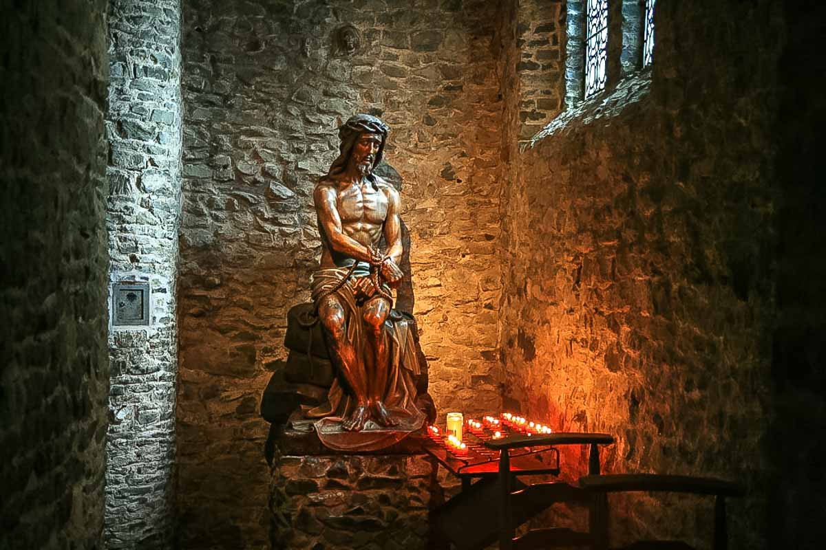 The double church, dedicated to Our Lady and Saint Basil consists of a lower church that has maintained its Romanesque character and a neo-Gothic upper church, in which the relic of the Holy Blood is preserved.