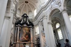 This is must-see for visitors to Bruges. St. Walburga's is a symphony of black and white marble. This Jesuit church was built by Pieter Huyssens in the middle of the 17th century and was originally dedicated to St. Francis Xavier . The image of this holy still adorns the austere facade. The white marble communion rails were made by Hendrik Frans Verbrugghen in 1695. These rails are a high point of Flemish Baroque sculpture. The confessionals in classicizing style date from 1802. The oak choir stalls and communion rails are from the 18th century. The organ case was commenced in 1735 by Frenchman Cornil Cacheux and completed by Jean Baptiste Fremat in 1739. It is decorated with statues of graceful women and Jesus on the Globe.