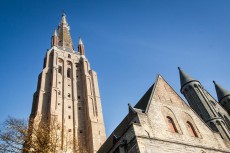 The Church of Our Lady with its 122-metre brick steeple, dominates the skyline of the city. It is quite literally the ‘high spot’ of the stonemason’s art in medieval Bruges. It took two centuries (13th-15th) to build the church. Among the many art treasures is a beautiful Carrara marble Madonna and Child sculpture by Michelangelo.