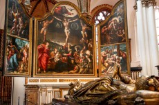 Elsewhere you'll find the funerary chapel of Pieter Lanchals containing frescoed tombs in maroon and black as well as Van Dyck's starkly atmospheric painting of Christ on the cross.