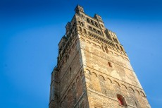 The roof of the cathedral collapsed in a fire in 1839. Robert Chantrell, an English architect, famous for his neo-Gothic restorations of English churches, was asked to restore to Sint-Salvator its former glory. At the same time he was authorized to make a project for a higher tower, in order to make it taller than that of the Onze-Lieve-Vrouwekerk. The oldest surviving part, dated from the 12th century, formed the base of the mighty tower. Instead of adding a neo-Gothic part to the tower, Chantrell chose a very personal Romanesque design. After completion there was a lot of criticism and the royal commission for monuments (Koninklijke Commissie voor Monumenten), without authorization by Chantrell, had placed a small peak on top of the tower, because the original design was deemed too flat. The Neo-Romanesque west tower is fortress-like 99 meters high.