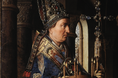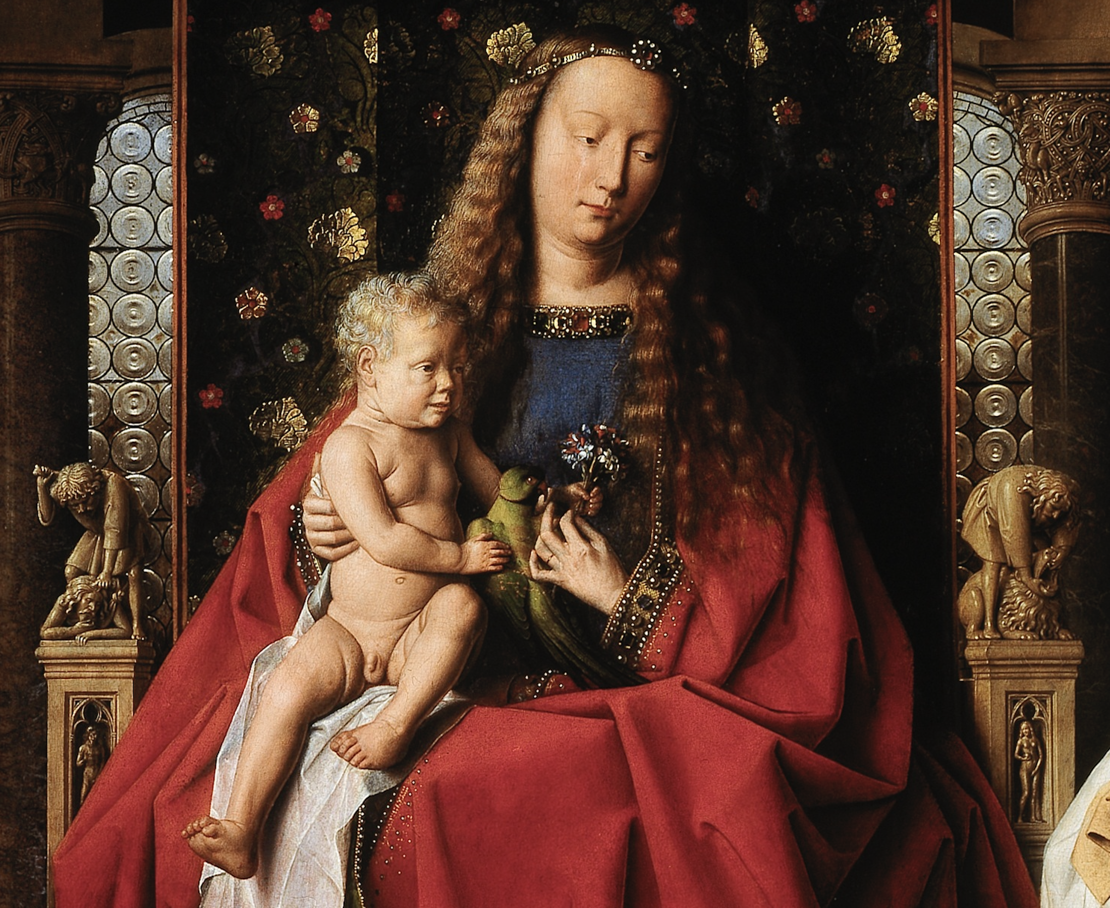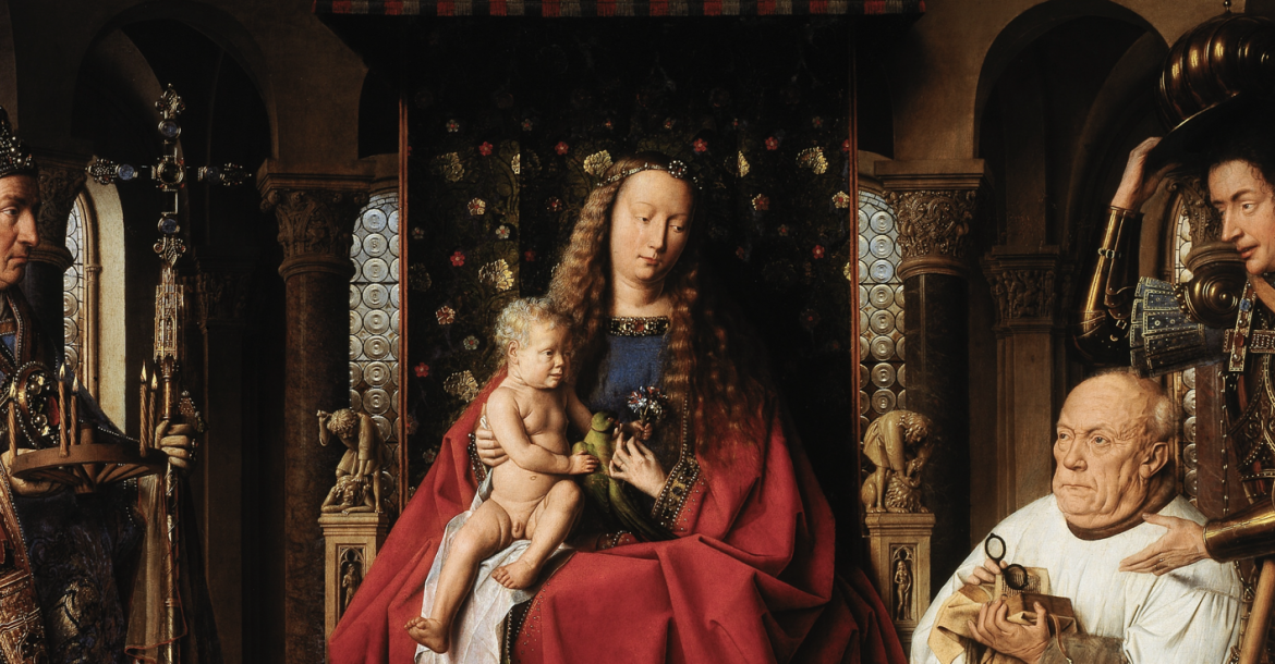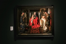 This exhibition focuses on two masterpieces by Burgundian court painter Jan van Eyck: "Our Lady with the Child Jesus, St. George, St. Donatian and Canon van der Paele" from 1436, and the portrait of his wife "Margareta van Eyck" from 1439.