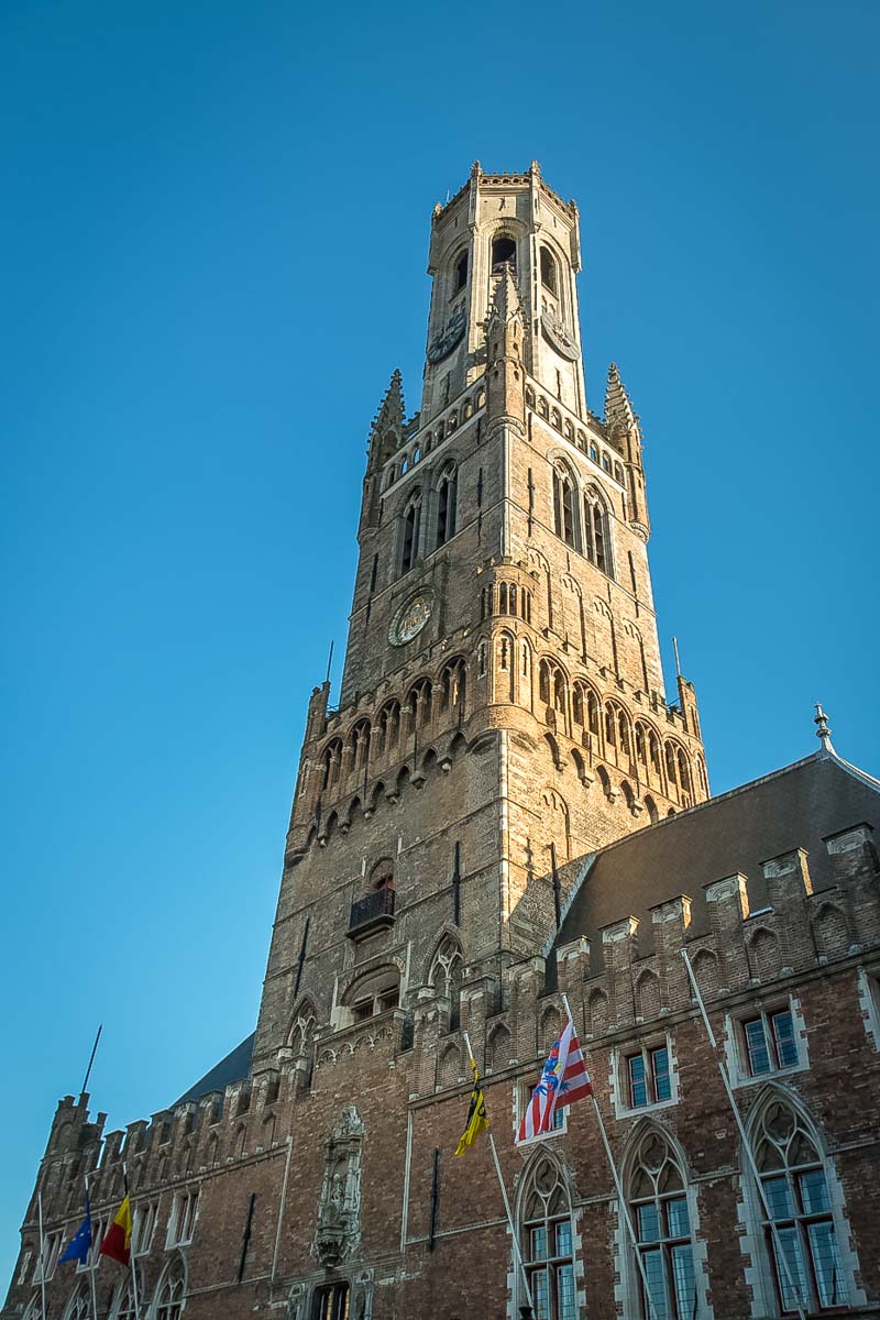The 83 meter high belfry or hallstower (halletoren) is Bruges' most well-known landmark and its most symbolic civil monument.