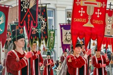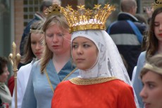 The colourful procession dates back to the thirteenth century, when a citizen of Bruges is said to have brought the Relic of the Holy Blood of Jesus Christ back from the Second Crusade. Led by the thirty city notables of the Brotherhood of the Holy Blood and accompanied by brass bands, more than 2,000 citizens on foot, in carts or on horseback perform stories from the Old Testament, the life of Jesus and the history of Bruges. Then, various civic groups venerate the relic and the procession concludes with a prayer ceremony, performed in several languages to accommodate the international audience.