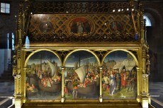 The St Ursula Shrine was the first Memling work to be identified as such in a historical text. Although commissioned for St John's Hospital, it has neither an inscription nor a signature. This might be explained by the fact that the shrine was not on permanent display, but was shown only on the feast-day of St Ursula. Memling's care for detail and constant concern for harmony are part of his predilection for a classical style. These aspects of his art are given their finest expression in the St Ursula Shrine. Memling was commissioned to decorate a new reliquary, to which the saint's remains were to be transferred on 21 October 1489 during a grand ceremony in the chancel of the church of the hospital of St John.