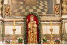 The altar to the right is dedicated to St Joseph. The gilded Madonna and child below is the chapel’s Medieval treasure: "Our Lady of Consolation” or “Our Lady of Spermalie ” dates to 1240.